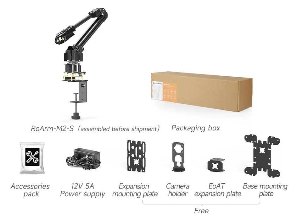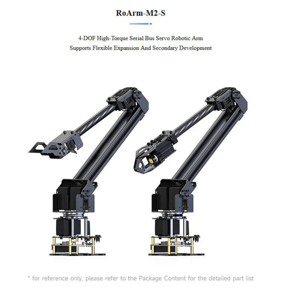 - RoArm-M2-S achieves an excellent balance between lightweight, user-friendliness, expandability, and open innovation, it is a multifunctional robotic arm that integrates intelligent control, human-machine interaction, and customizable development. Ideal for applications that require a combination of flexibility, expandability, and user-friendliness.
