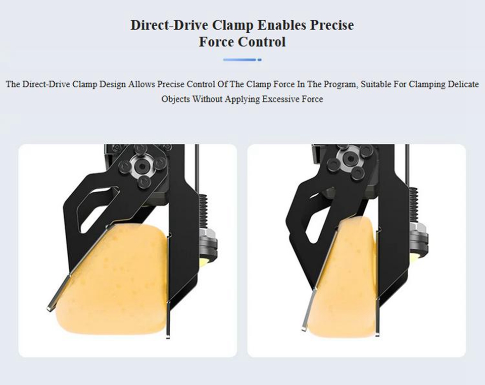 - The direct-drive clamp design allows precise control of the clamp force in the program, suitable for clamping delicate objects without applying excessive force.
