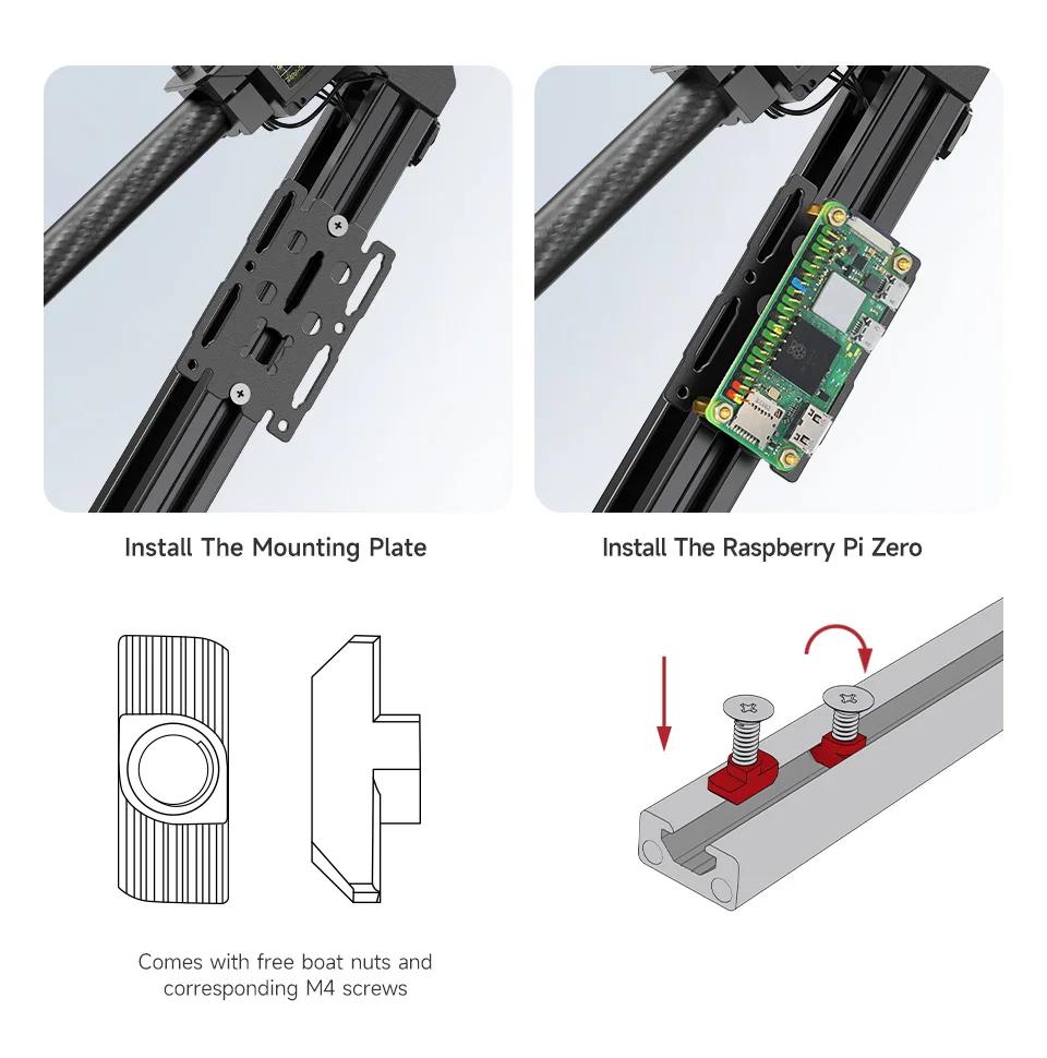 - The main structure of the upper arm adopts two 1020 European standard aluminum rails, supports installing additional peripherals via the boat nuts to meet different needs. Comes with boat nuts and corresponding M4 screws for easy installation.
