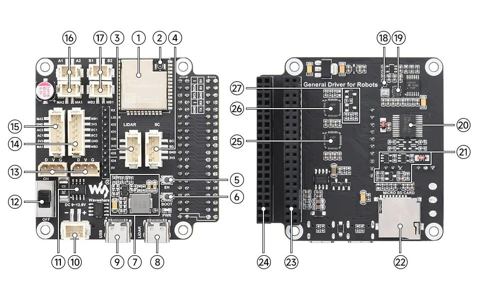 13. ST3215 serial bus servo interface: For connecting with ST3215 serial bus servo