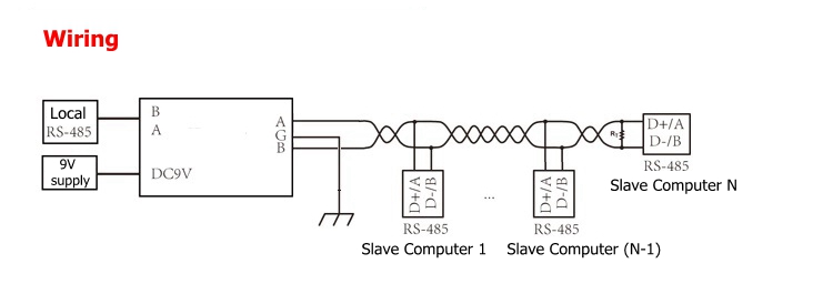1. Common Ground Method: Connect the GND ground of all 485 devices with one wire or shielded wire. This can avoid the potential difference between all devices that affects communication.