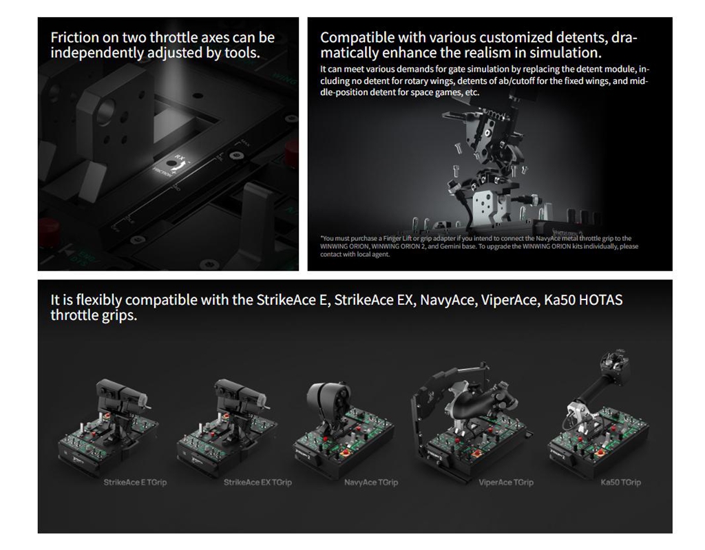 WINWING Orion2 StrikeAce E Metal Throttle with Grip + NavyAce Metal Joystick Flight Game Simulator