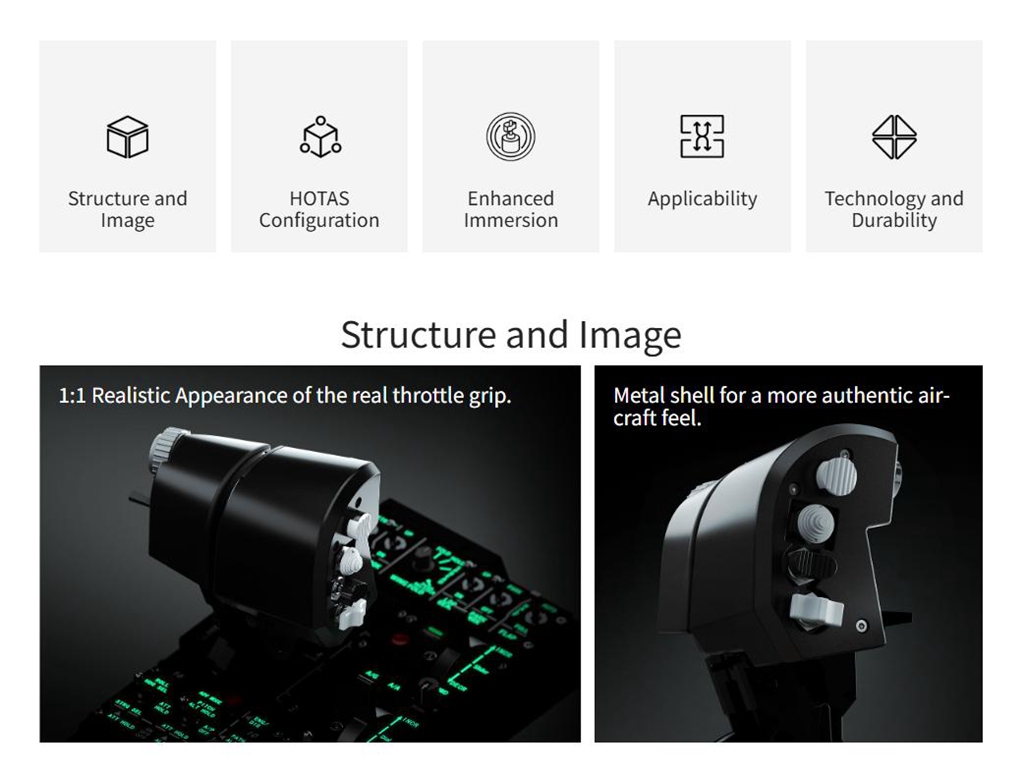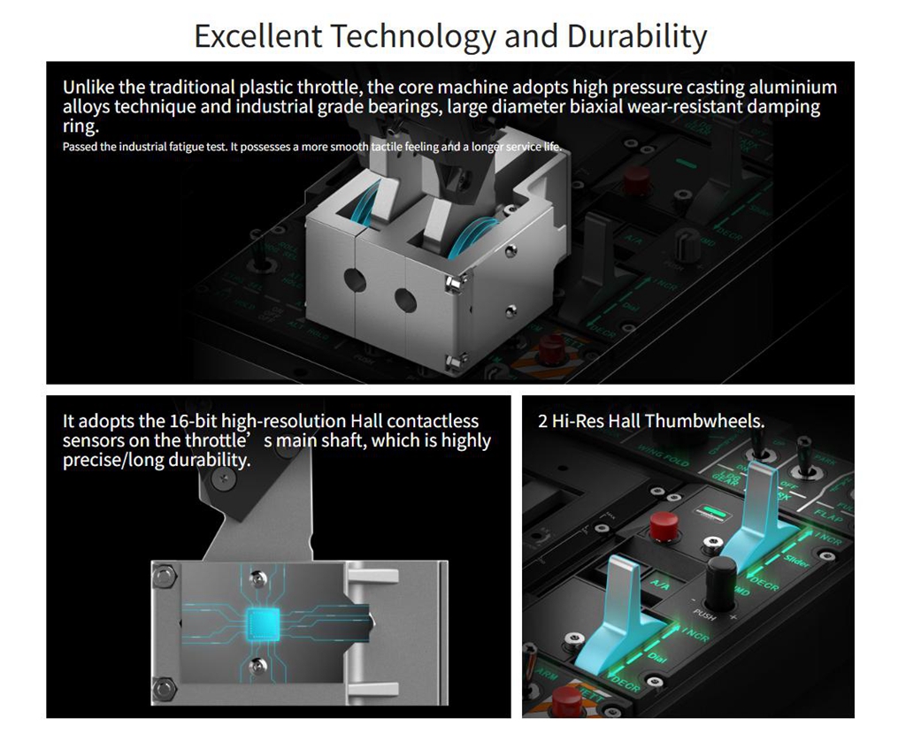 - Customized Long-travel, Hard-Press, High-Strength Multi-Directional Switch. Superb Audible and Tactile feedback. Replicated the real aircraft control feels.