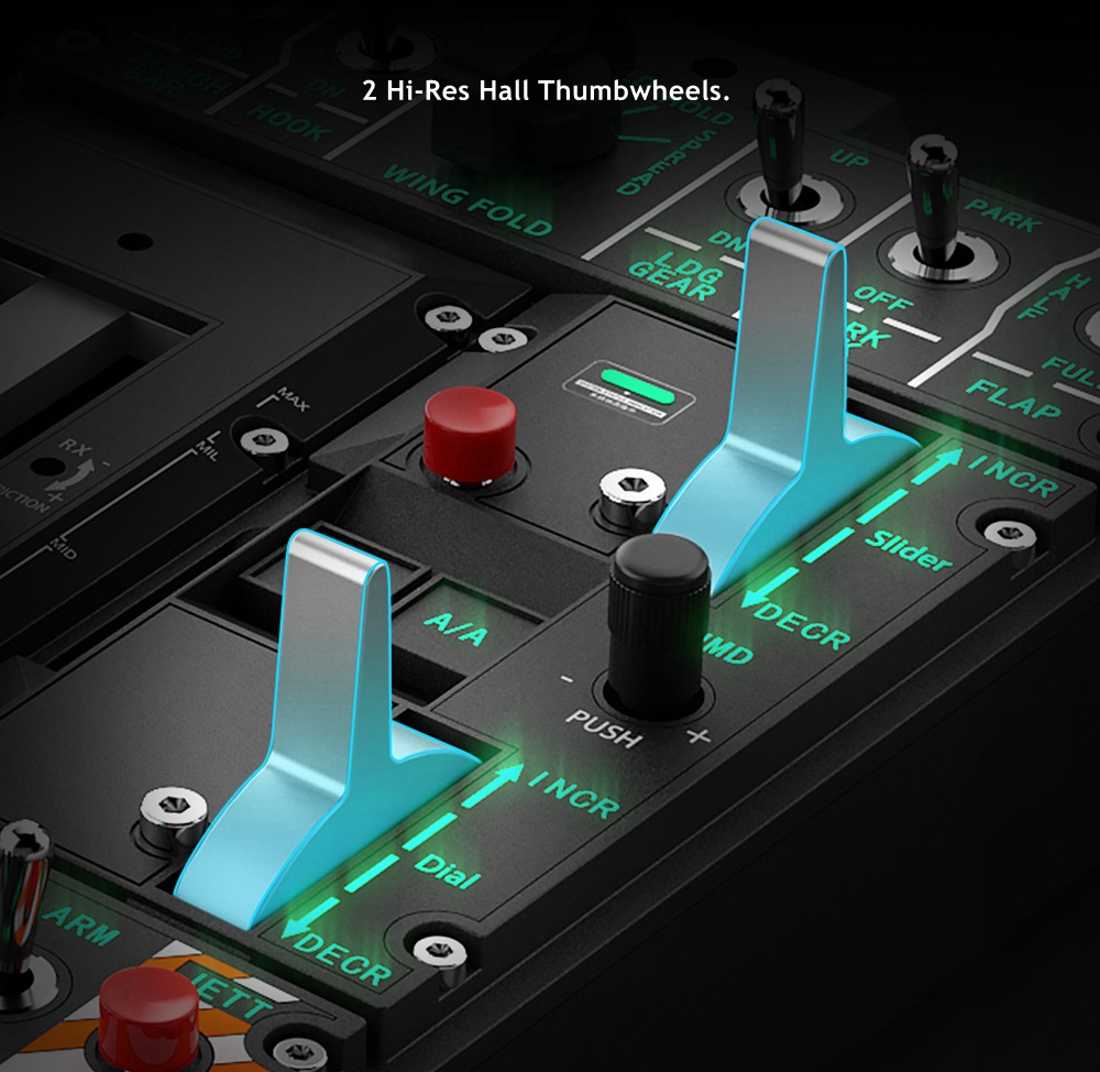 - Customized long-travel, hard-press, high-strength multi-directional switch. Superb Audible and tactile feedback. Replicated the real aircraft control feels.