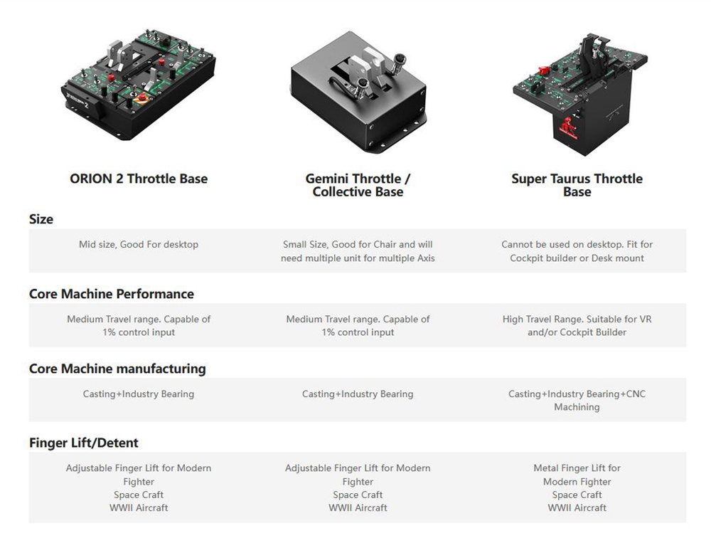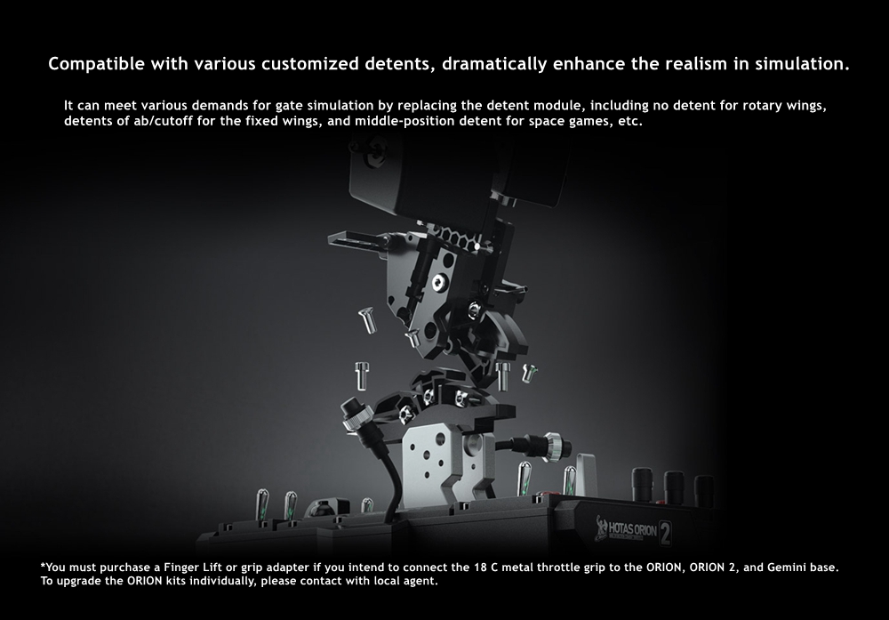 - Finger Lift for Orion2 base. Add in the true feeling of controlling the real aircraft on your desktop. This module has 3 adjustable detent positions. You can choose the Cutoff(Reverse), Mid or After Bunner (Forward) detent position to meet your need in Modern Air Combat, Space Flight or WW 2 aircraft.