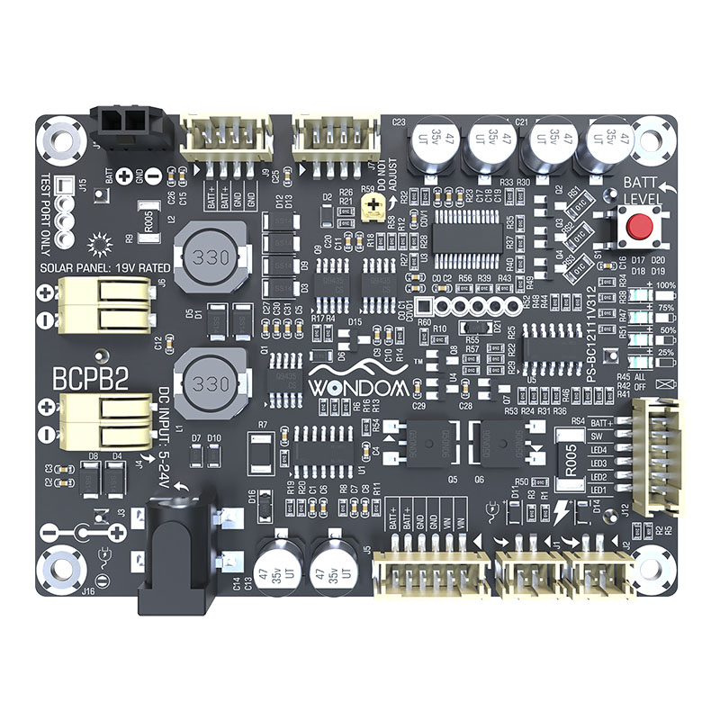 - BCPB2 is a highly reliable Lithium-Ion Battery Charging, Protection, and Balancing Board that operates with wide input range, 5-24V. This board is able to charge the batteries from input voltages above, below, or equal to the output voltages. It is designed for 3 in series 18650 Lithium-Ion Battery which provides approximately 30-40Wh energy. The MPPT charging integrated feature supports a 15-24V power supply. BCPB2 is complemented with a visualized display of battery level indicators. To ensure the reliability of this board, it is equipped with full protection circuit; overcurrent, over-temperature, short circuit, and over/under voltage protection. The battery balancing IC allows constant battery voltage between 3 in series 18650 Lithium-Ion cells. It is designed for industrial application with verified MTBF for low-temperature increment under rigorous design.