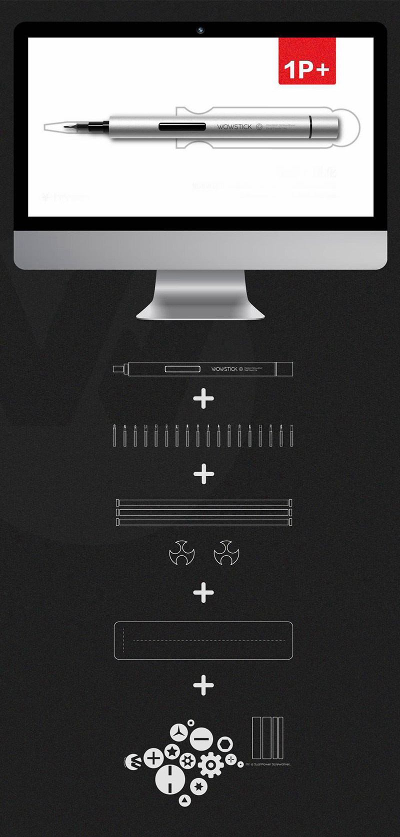 - Mini Wowstick 1P+ electric screwdriver with 20pcs S2 steel bits