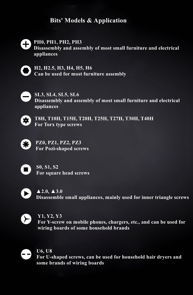 - 36pcs S2 bits. The hardness of alloy steel bits can reach 60HRC