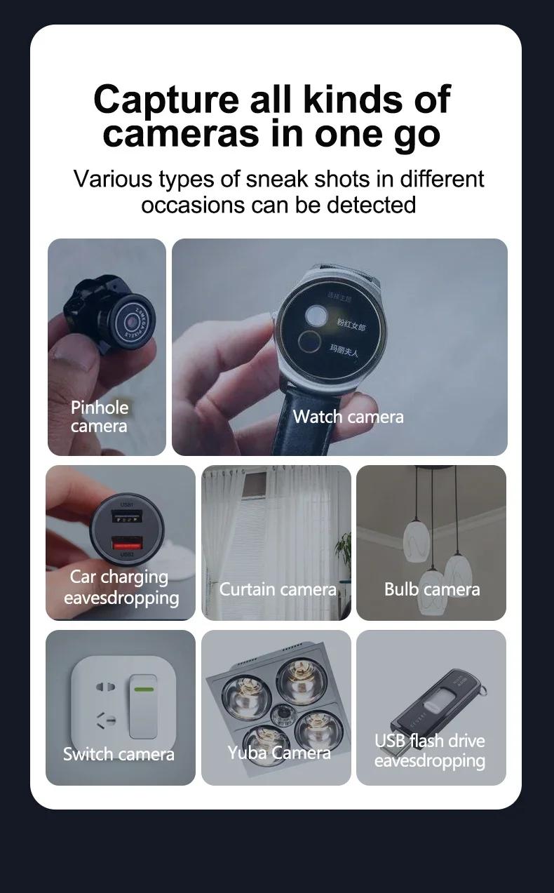 - Capture all kinds of cameras, such as pinhole/hidden GPS positioning device, wireless camera, GPS camera.