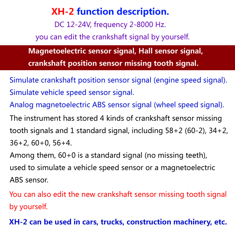 XH-2 Automotive Sensor Simulator Tester 2-8000Hz Car Signal Generator Signal Simulator Vehicle Tool