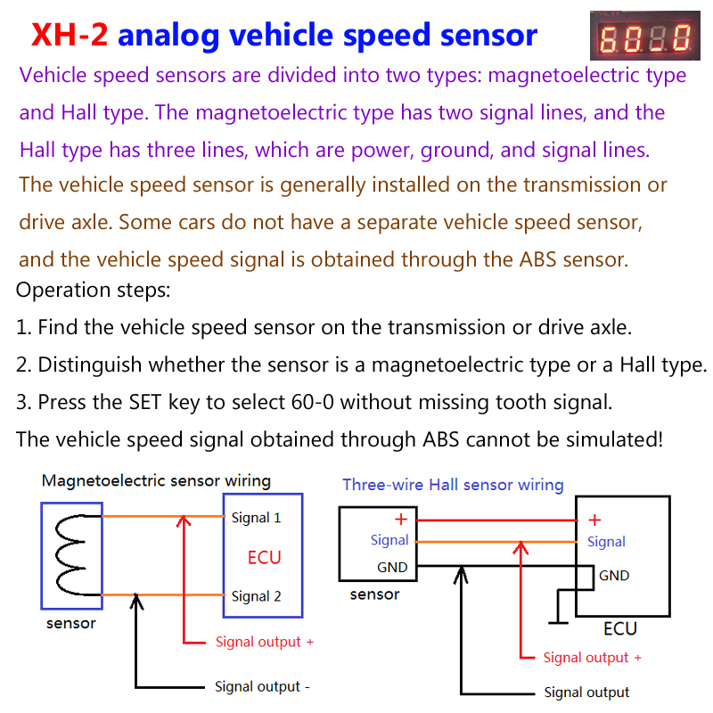 - Use 60+0 signal to simulate vehicle speed sensor signal output. Camshaft sensor signal simulation
