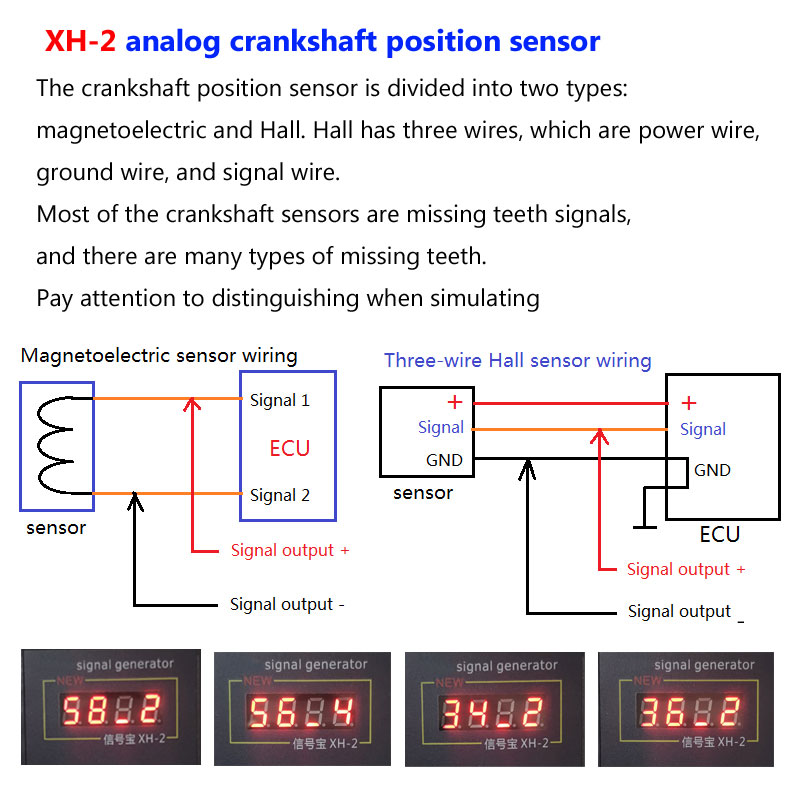 - Users can use multimeter to check output signal type. Use multimeter (20V measurement) to test the signal generator output, it output is about 5.8V, its output is Hall signal. If output is 0V, the output signal type is Magnetoelectric signal.