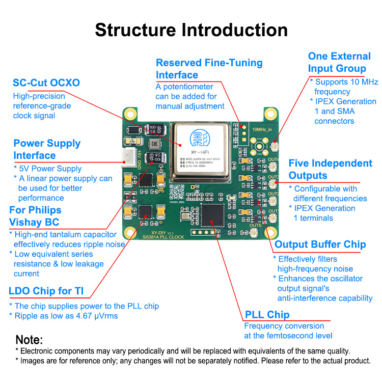XY-HiFi XY-DIY Y11 OCXO Clock Board OCXO Clock Upgrade Board (Y11c w/ 5CH Output Si5381A PLL Clock)