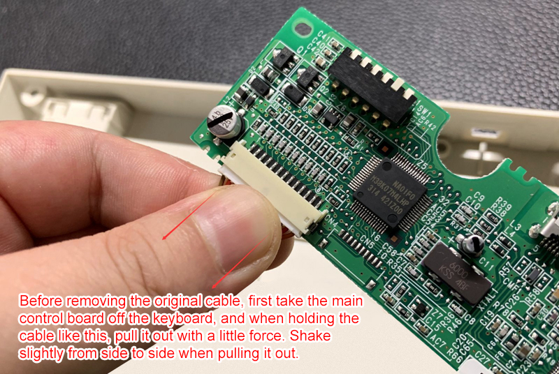 3. Remove the cable, as shown in the figure below, the key is to use a little force, it is not so fragile. Attention: Pull with a little force, and you can shake it slightly from side to side while pulling.