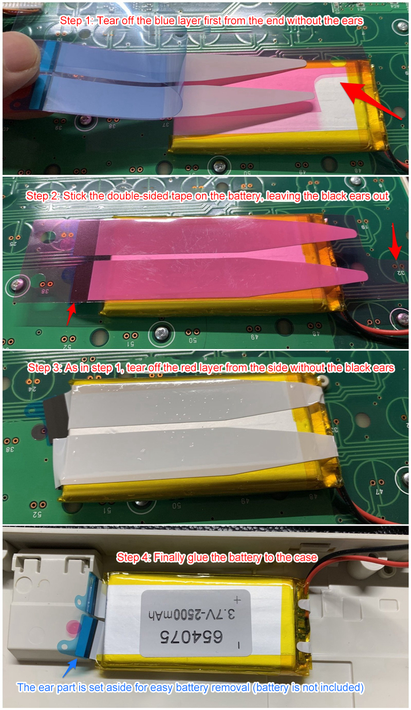 6. Use double-sided tape to fix a battery as follows: