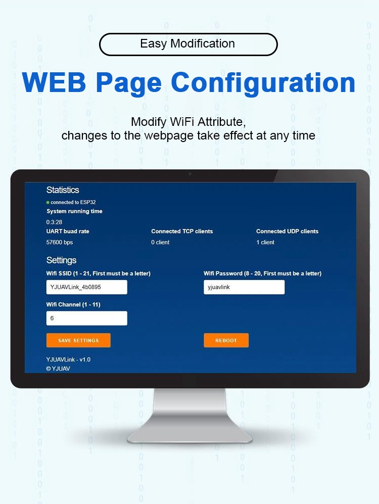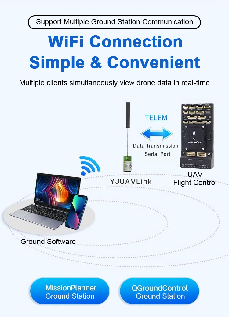- WiFi name: YJUAVLink_xxxxxx (default)