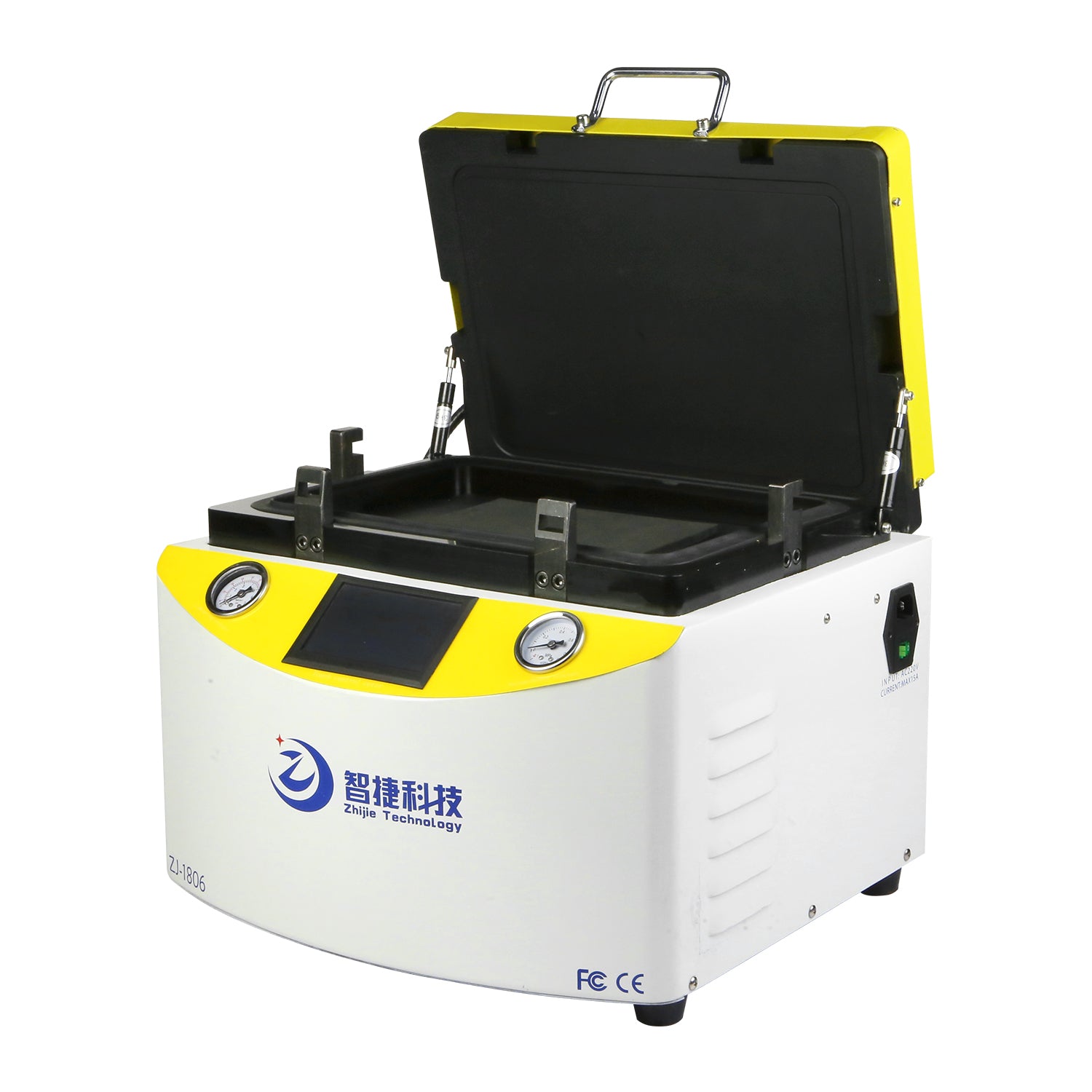 It can be plugged in directly, and it can support a 15-inch screen at most. The bonding and defoaming are performed in the same working chamber. With LCD display interface.
