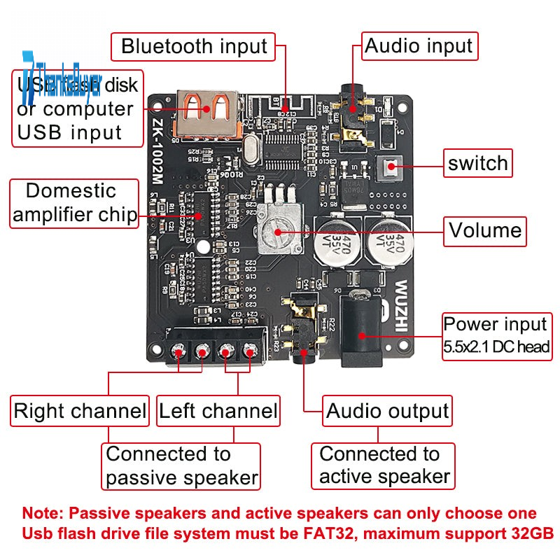 ZK-1002M Mini 2.0 Stereo Digital Power Amplifier Module 100W*2 Support Multiple Inputs Unassembled
