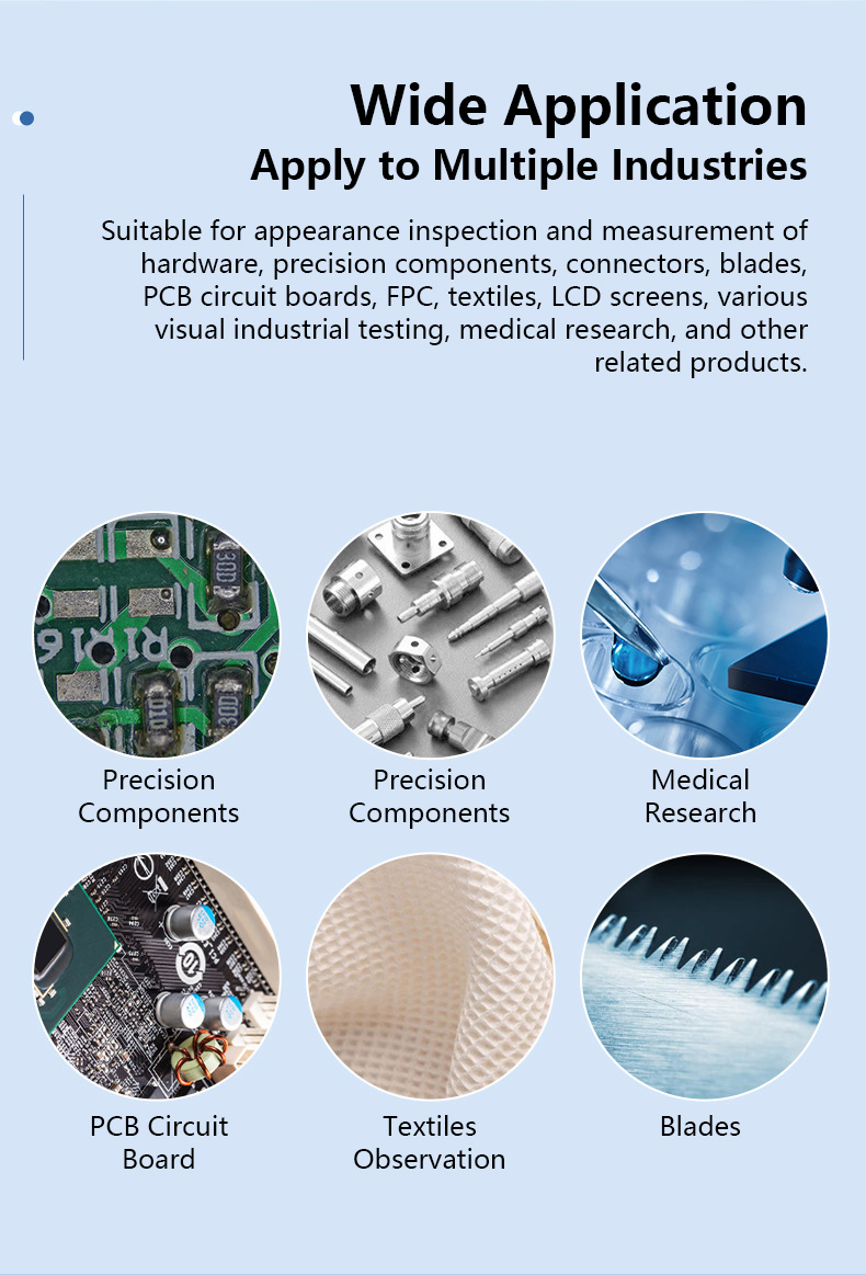 - Measurement function: point, line, rectangle, circle, arc, polygon, center to center distance, point to line, line to line, angle and other distance measurements.