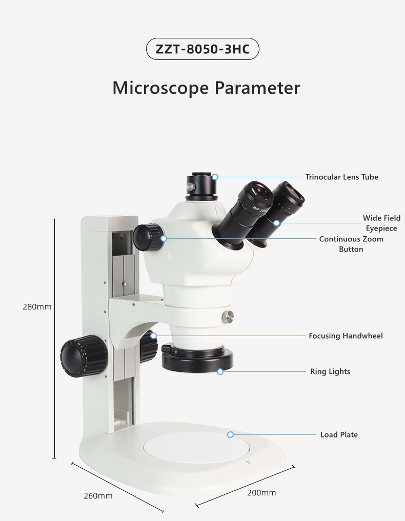 - Optical magnification: 0.8X - 5.0X continuous adjustable