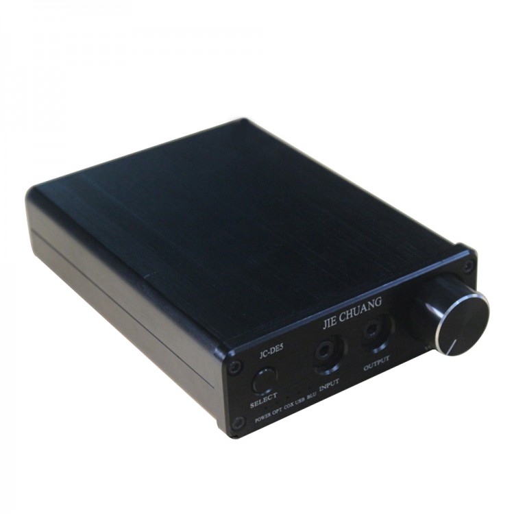 - JC-DE5 integrates optical fiber, coaxial, USB, analog audio signal input. It is decoder and headphone amplifier.