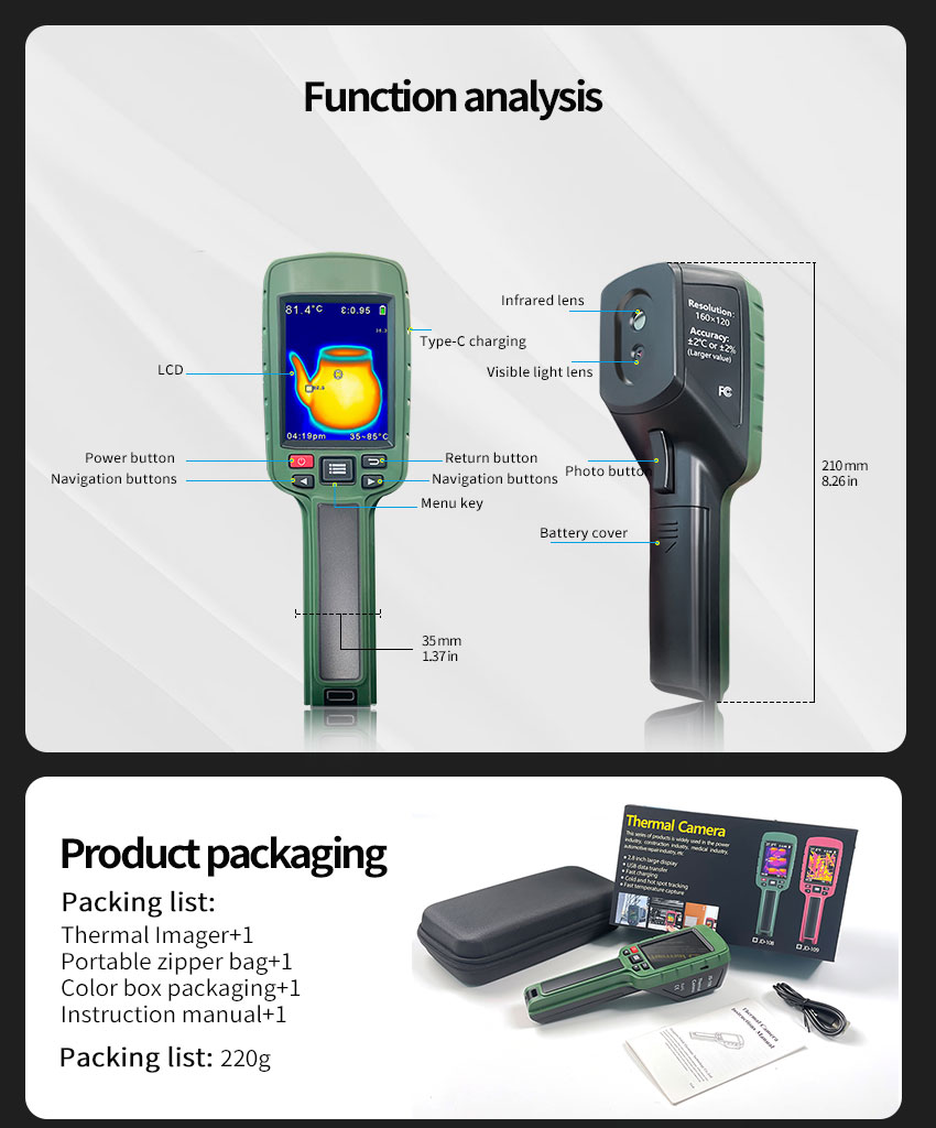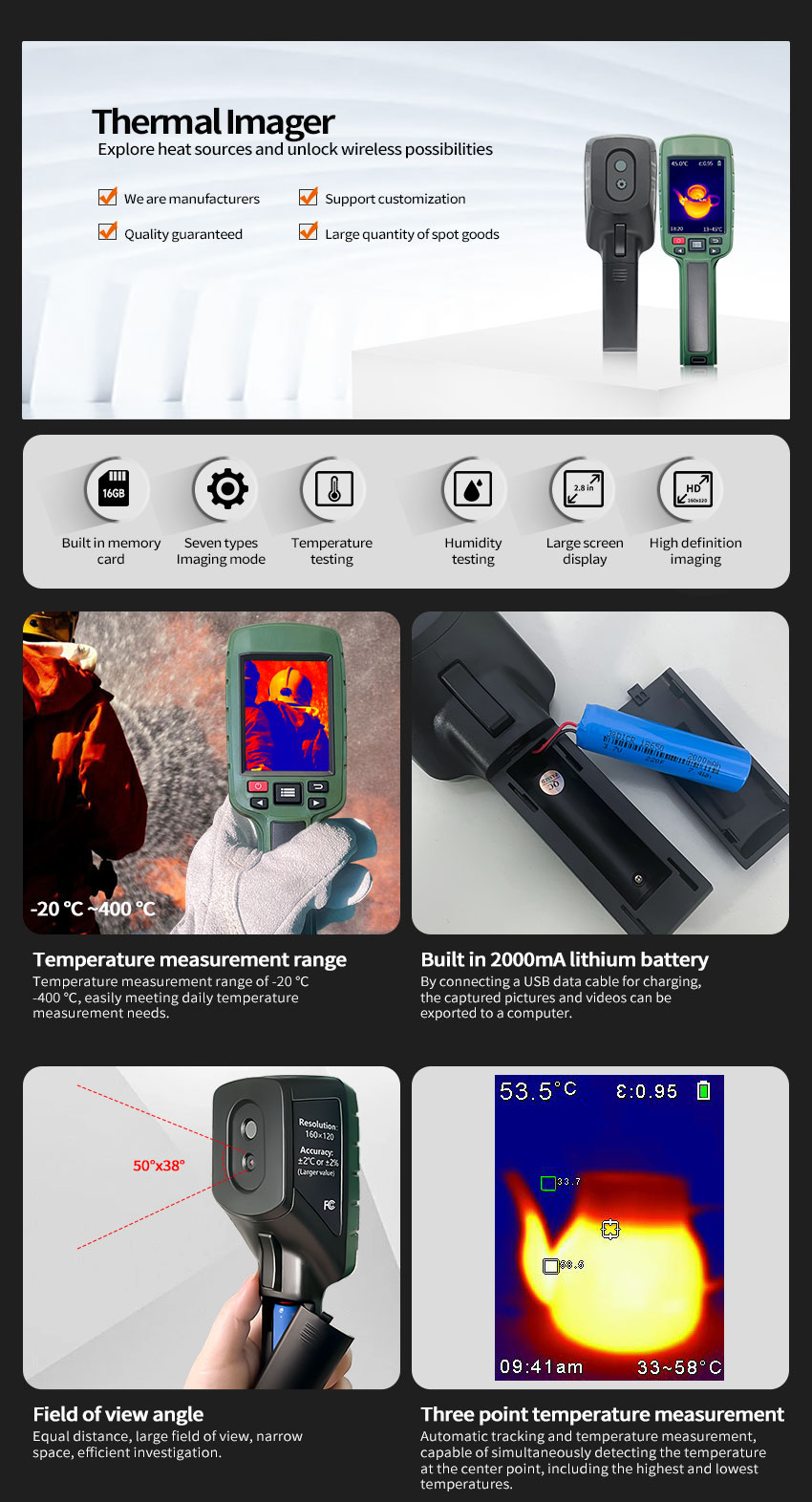 JD-108 Industrial Handheld 8um-14um Infrared Thermal Imager 160x120 HD Thermal Camera Built-in 16GB Micro SD