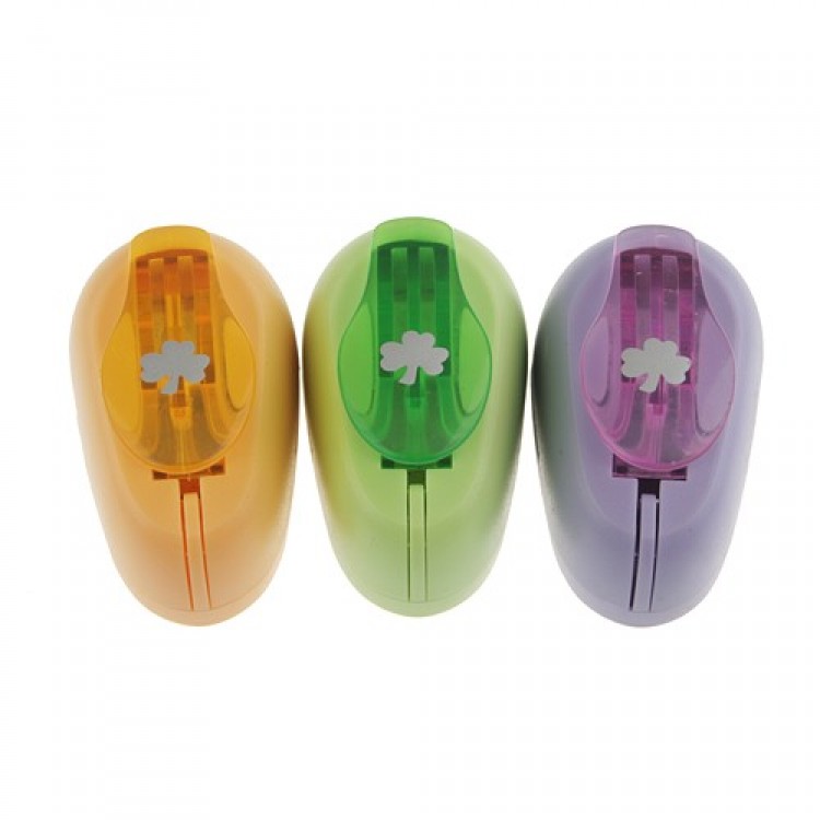 This shape of craft punch is clover Uesd to make cards or pictures. Make you life more funny. These tools enhance any scrapbooking tool kit. The punches are sharp and function well. Have been gently used. Built in confetti catcher helps keep work area clean Color:Purple, Green, Pink Color is random in delivery
