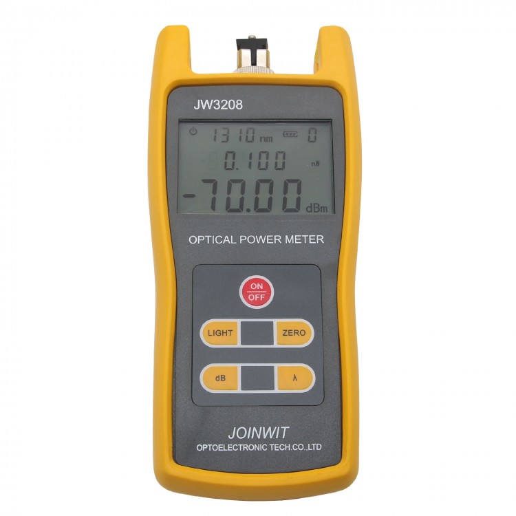 - JW3208 Handheld Optical Power Meter is handheld fiber Optic testing device.Wide power range,multi wavelength calibration,it can work with JW3109 light source and JW3303 optical attenuator.