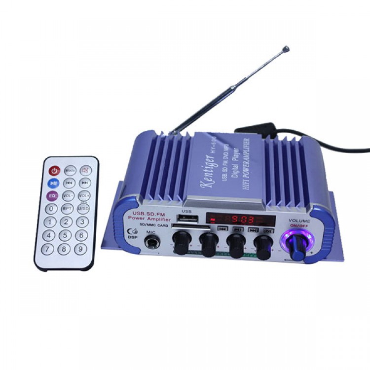 Kentiger Mini Stereo Amplifier USB SD FM Microphone Input 2CH RMS 20W+20W Blue