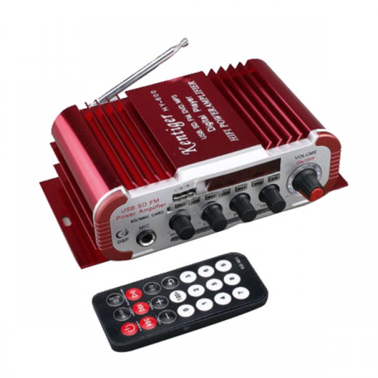 Kentiger Mini Stereo Amplifier USB SD FM Microphone Input 2CH RMS 20W+20W Red