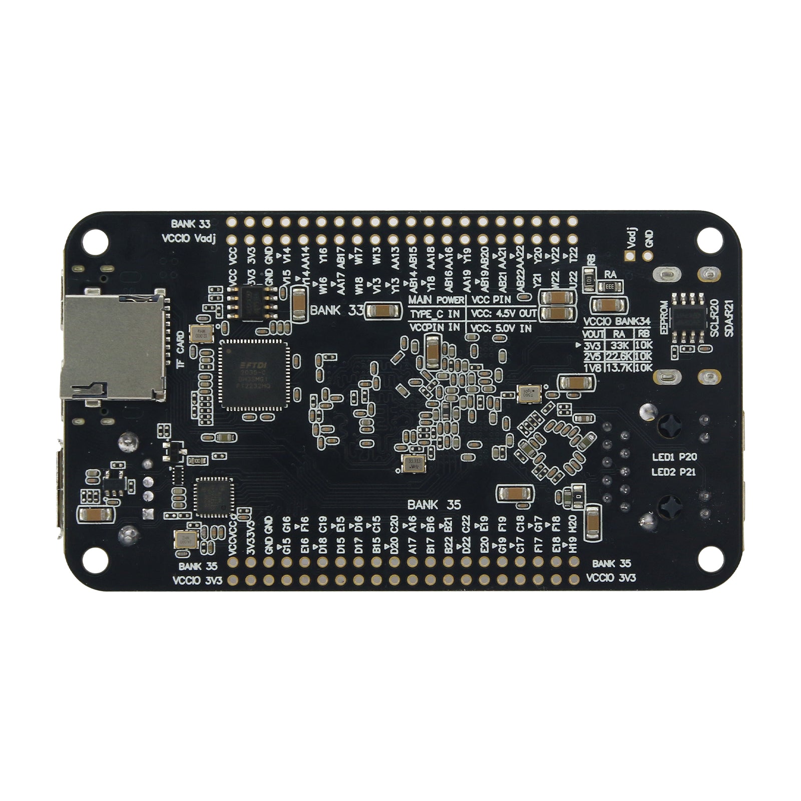 - The BANK on one side is independently powered, and the BANK voltage can be adjusted through a resistor