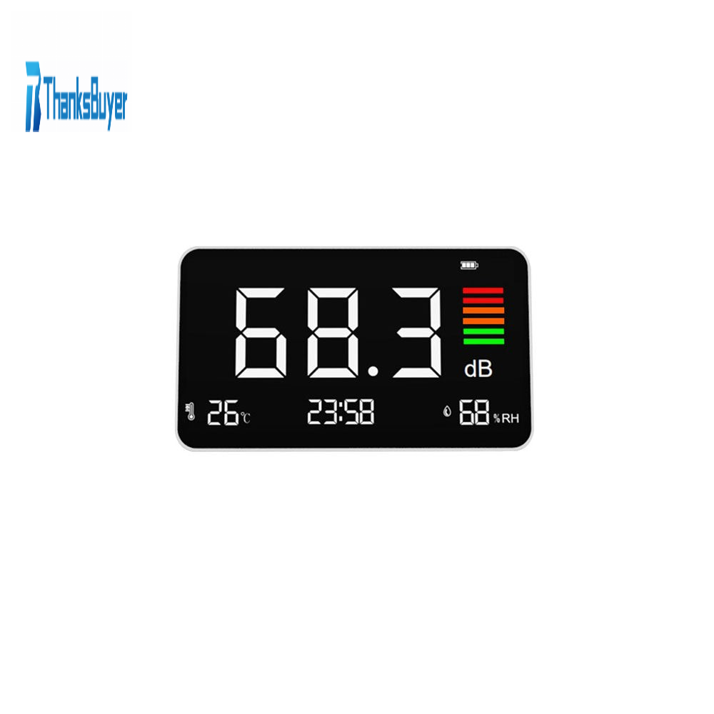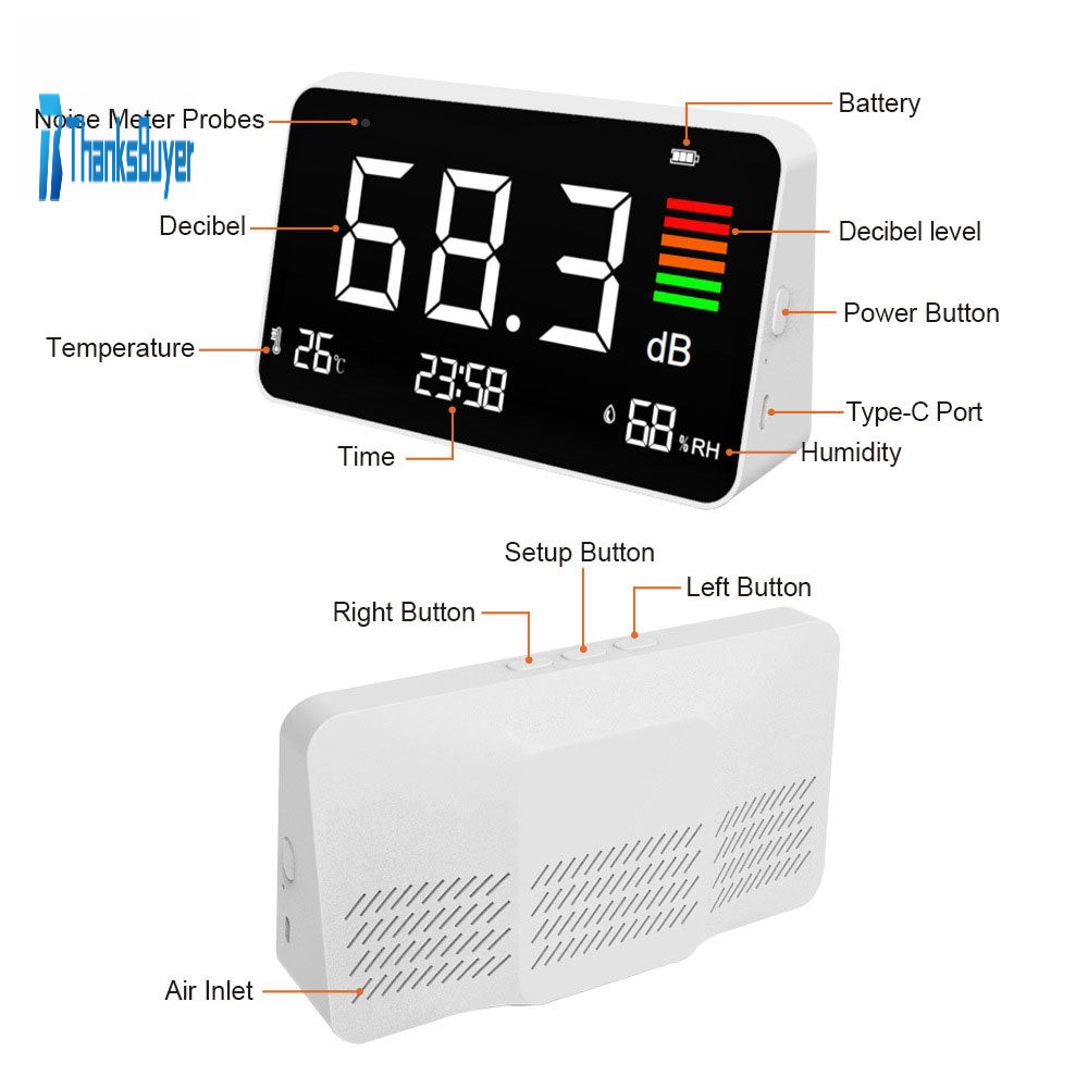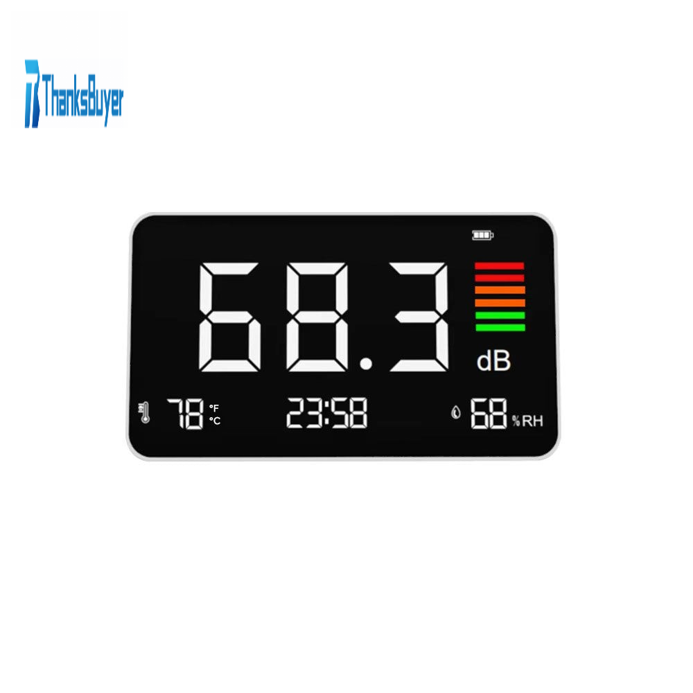 * 4-in-1 decibel meter can display noise readings, humidity, temperature, and time.