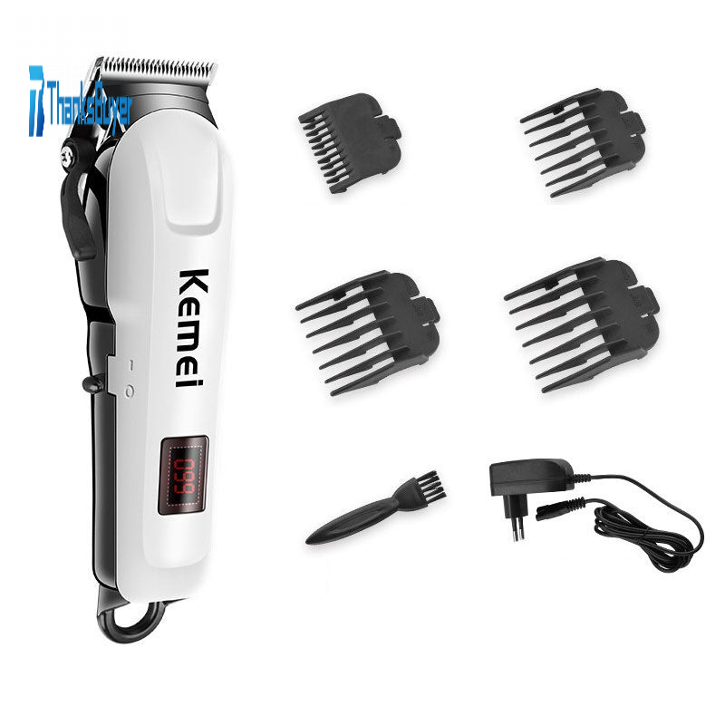 Kemei KM-809A Rechargeable Hair Trimmer LCD Display 12W Electric Hair Clipper 100-240V with Adjustable Blade Length