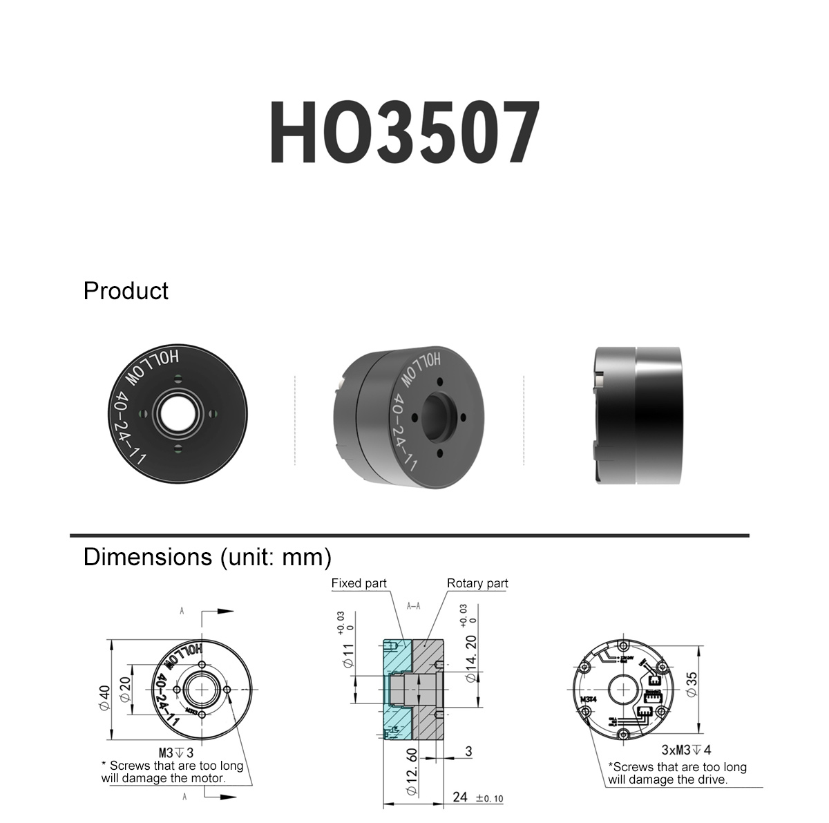 Product Details of HO3507 Hollow Servo Motor: