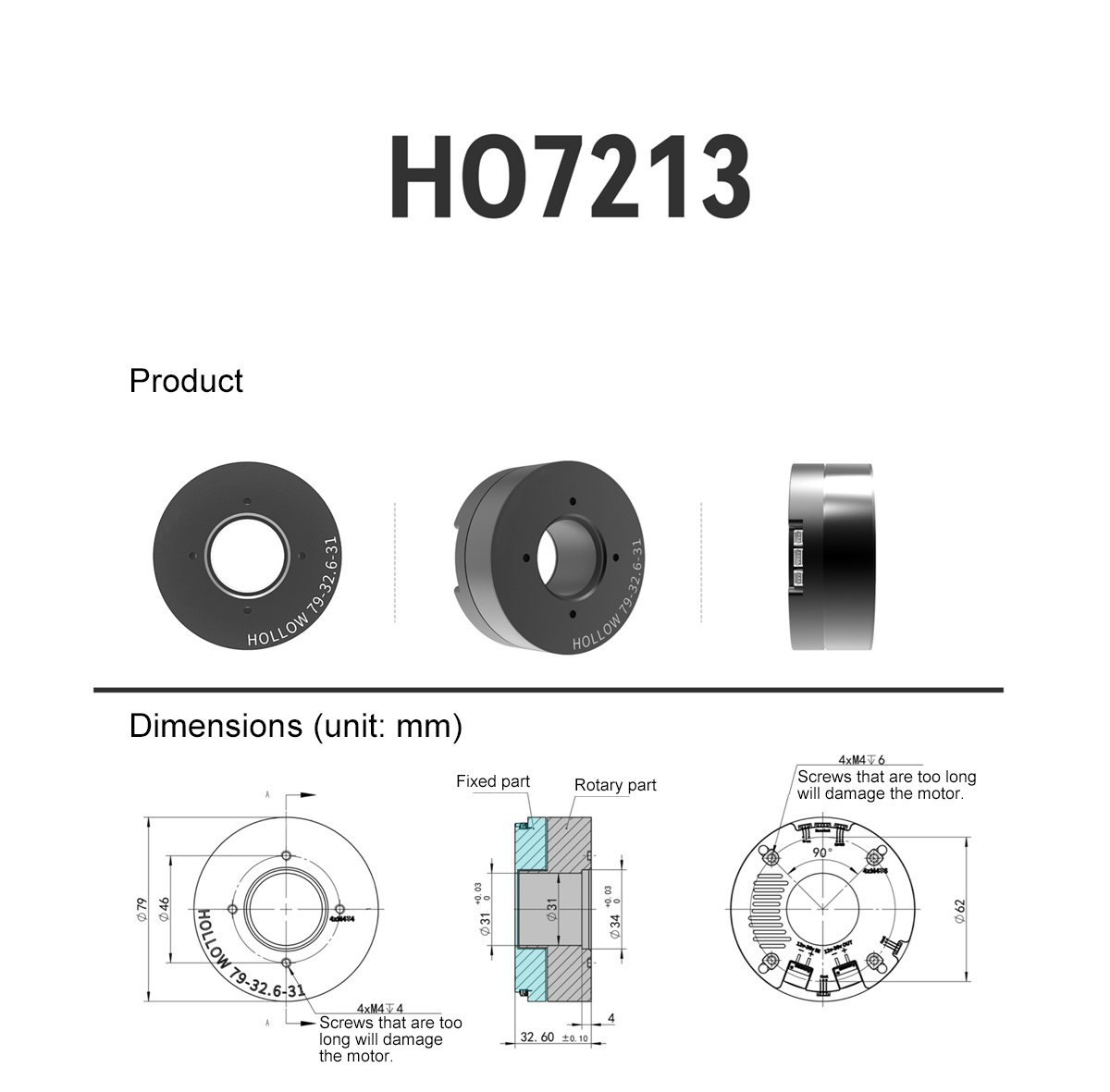 HO7213 ST-ST-ST Hollow Motor: