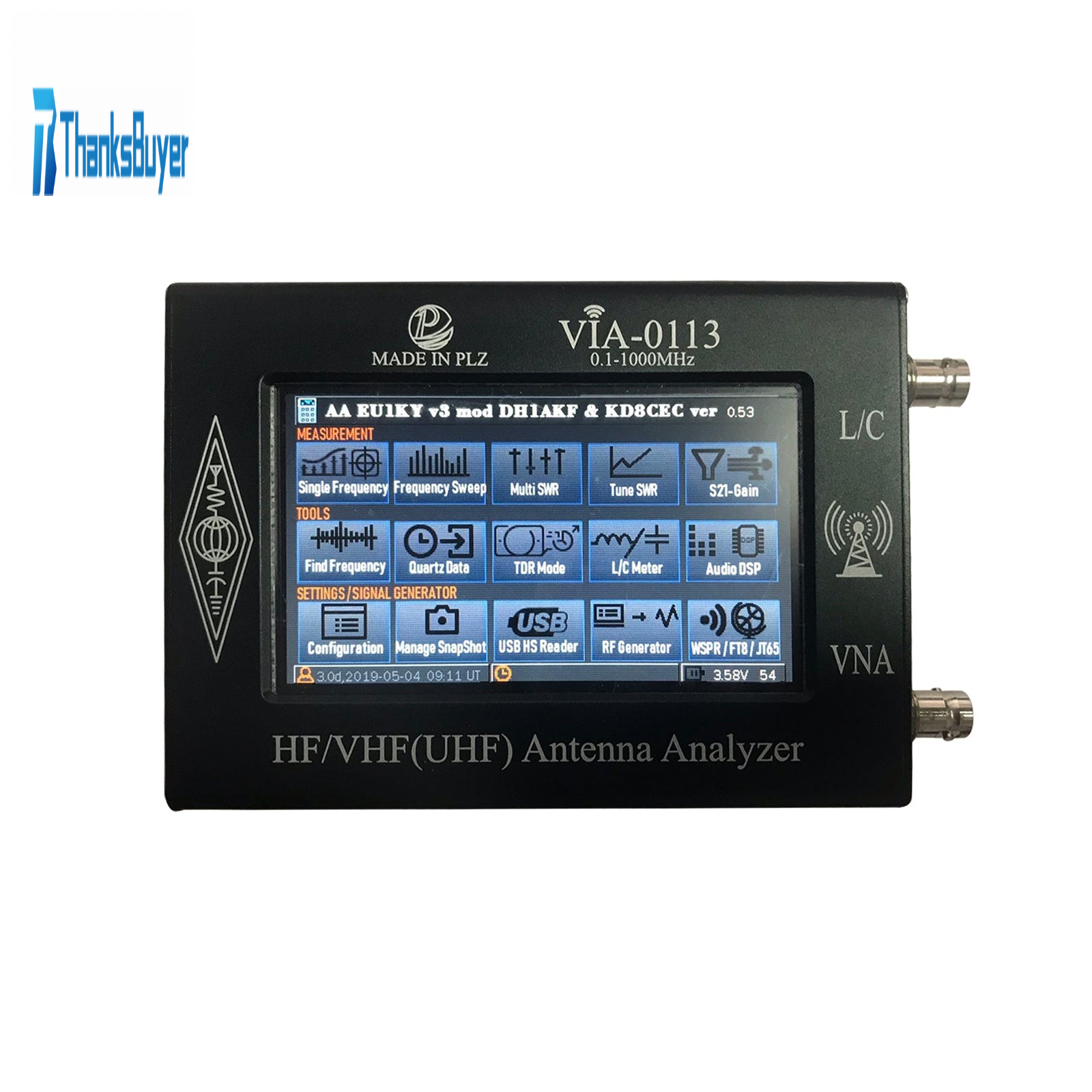 0.1-1000MHz HF VHF Antenna Analyzer with 4.3" TFT Imported Capacitive Touch Screen VIA-0113