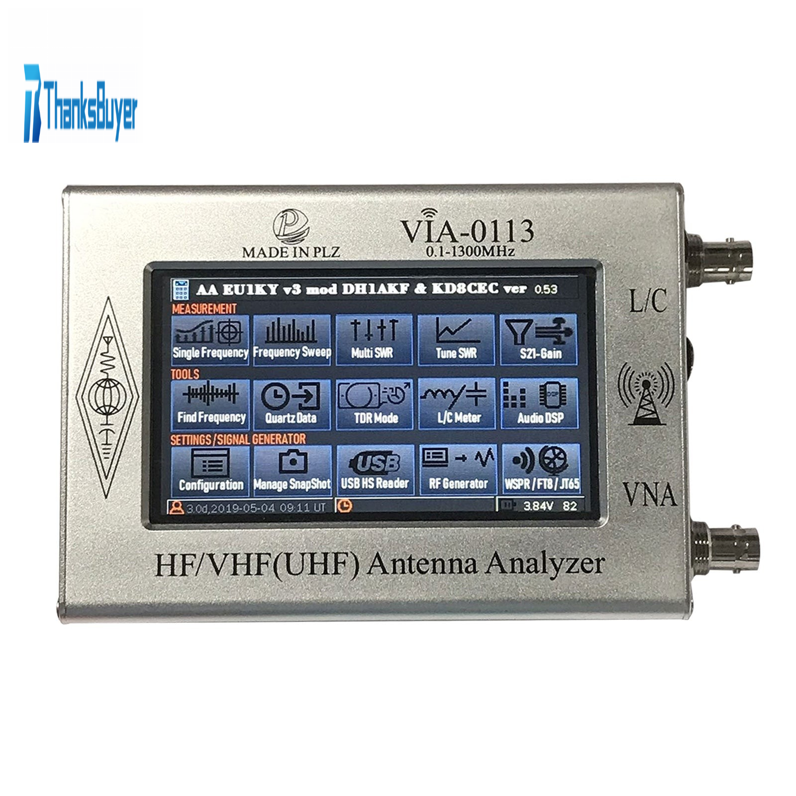 0.1-1000MHz HF VHF Antenna Analyzer with 4.3" TFT Imported Capacitive Touch Screen VIA-0113 Silver