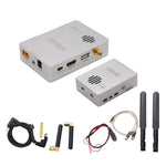 The air unit has an adjustable power output 20mW-800mW. 3KM on the ground (unobstructed, working in 1080P/500mW), more than 4.8KM air to ground (unobstructed, working in 1080P/500mW).