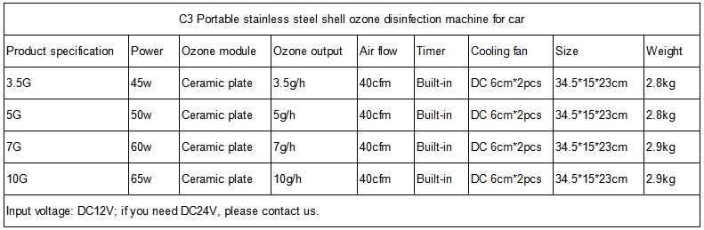 10g/h 65W Car Ozone Generator Air Purifier Ozone Machine w/ Timer Stainless Steel Shell C3
