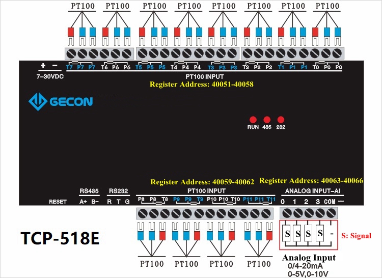 12PT100 + 4AI Industrial Controller Data Acquisition Module TCP-518E [Ethernet Communications]