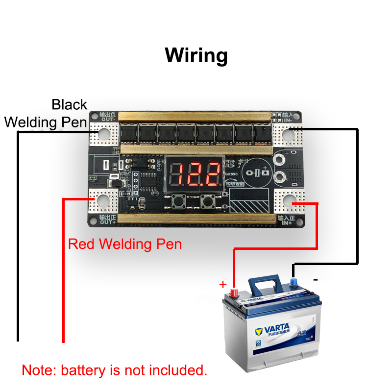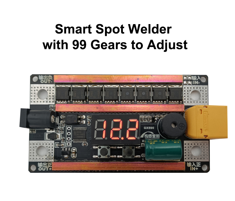 - Used as a spot welding machine as well as a voltage meter. With built-in 12-bit high-precision ADC, the voltage measurement accuracy can reach 0.01V. Voltage testable range: 8-24V. After connecting to power supply, it will automatically display the voltage of the power source