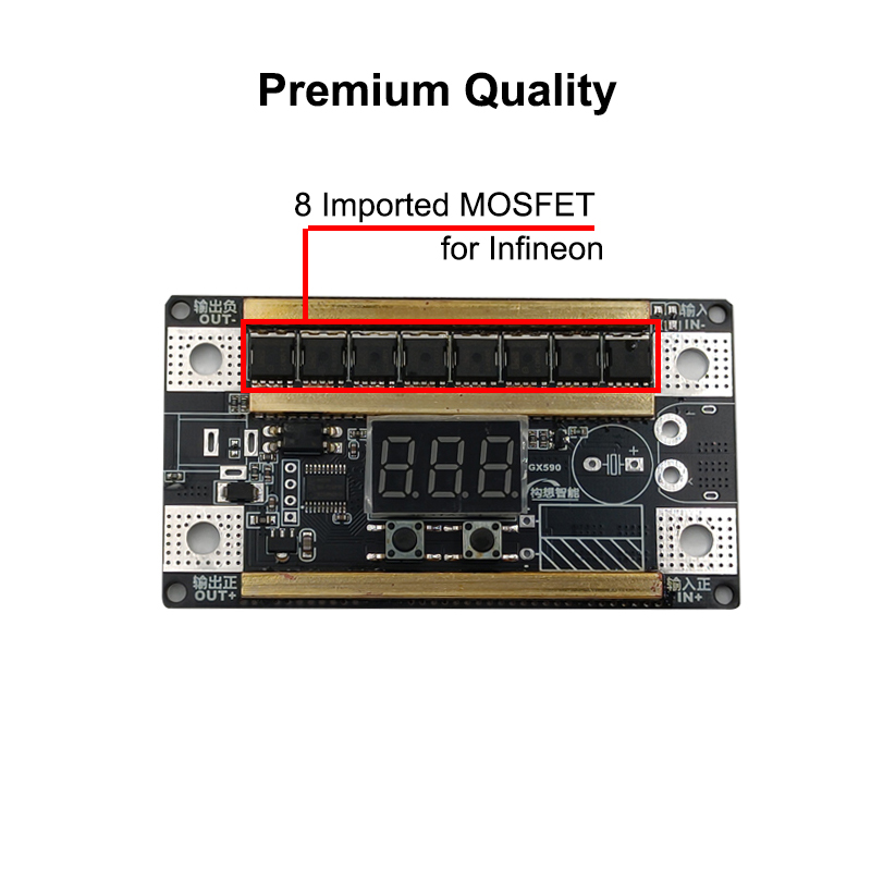 - The peak current of 8 MOSFET imported from Germany can reach 1600A (single load current 200A maximum). Limit temperature 175℃; 40V breakdown voltage; 0.8mΩ minimum on-resistance. Support 100-200A welding
