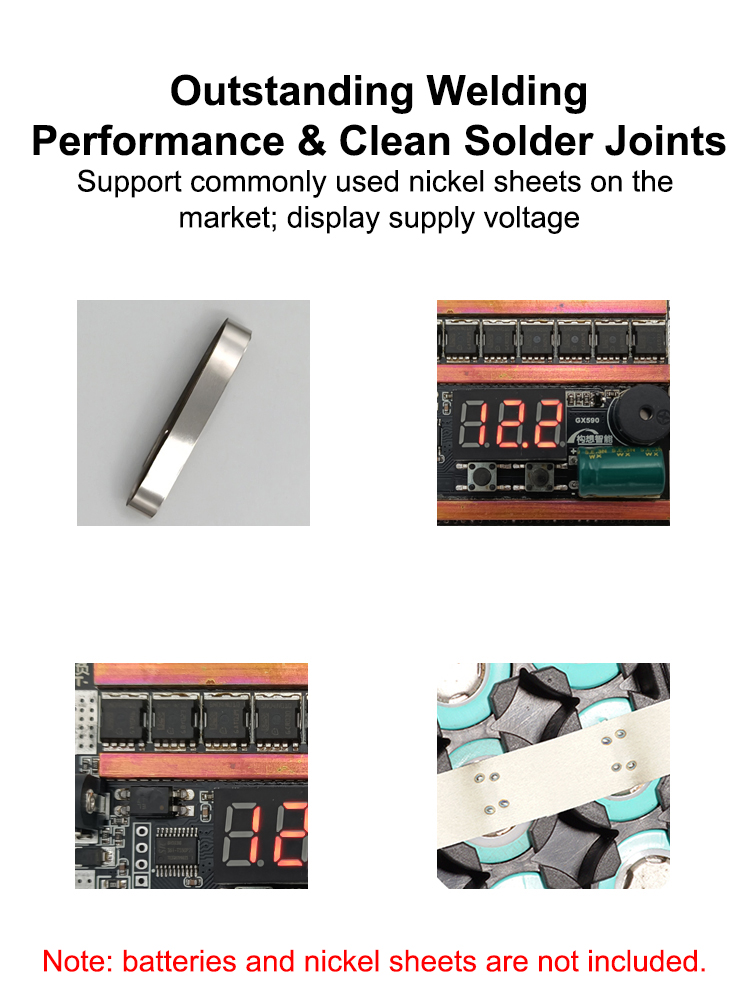 - Suitable for 0.1-0.15mm nickel sheets, enabling clean solder joints