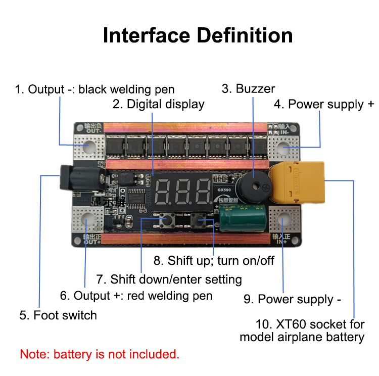 3. Buzzer: It will make a sound when spot welding, pressing a button, or when an abnormal alarm is issued