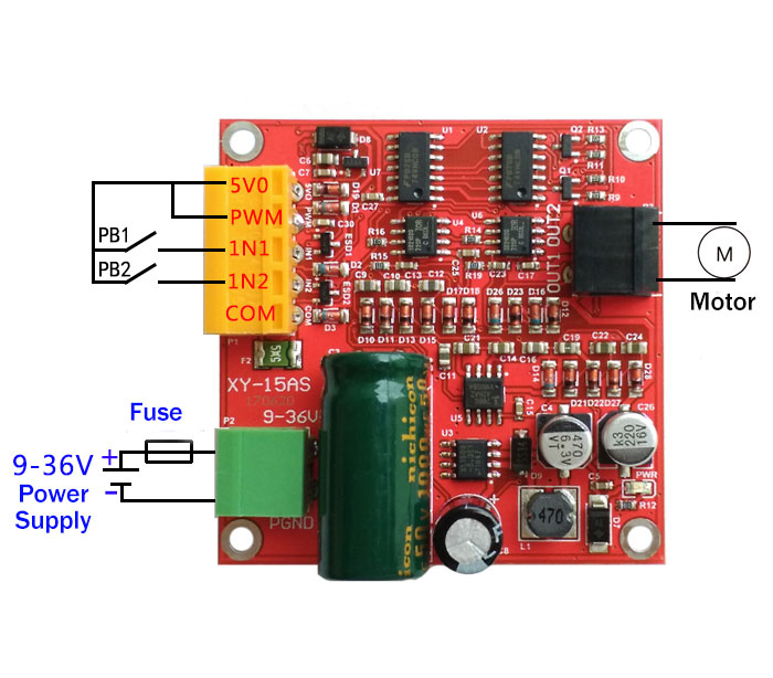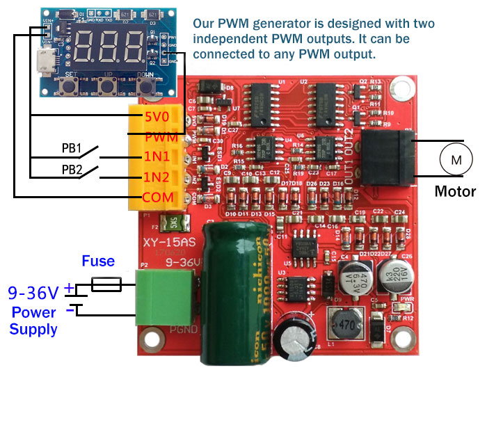 - Support full PWM. You can directly use buttons to control CW and CCW. Effective range of PWM is 0.1% ~ 100.0%