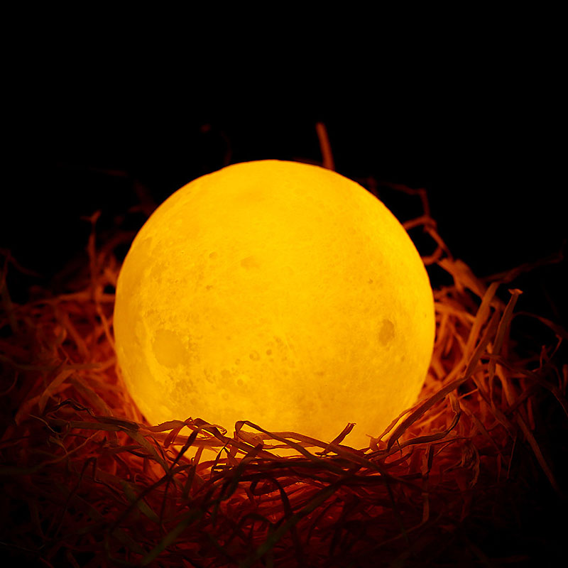 - The moon lamp is 3D printed in one piece. The material has high light transmittance