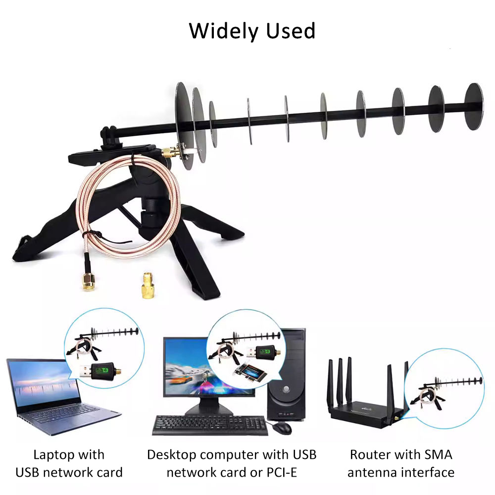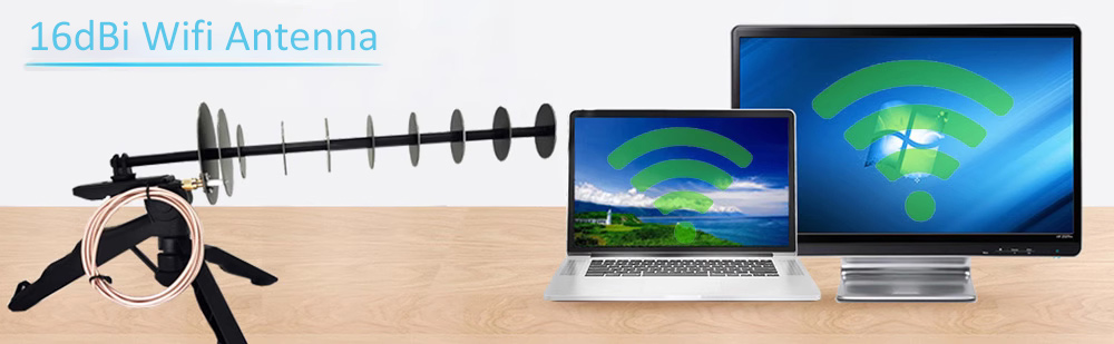 The 16dBi 2.4GHz Wifi directional antenna signal booster kit is suitable for laptops and desktop computers.