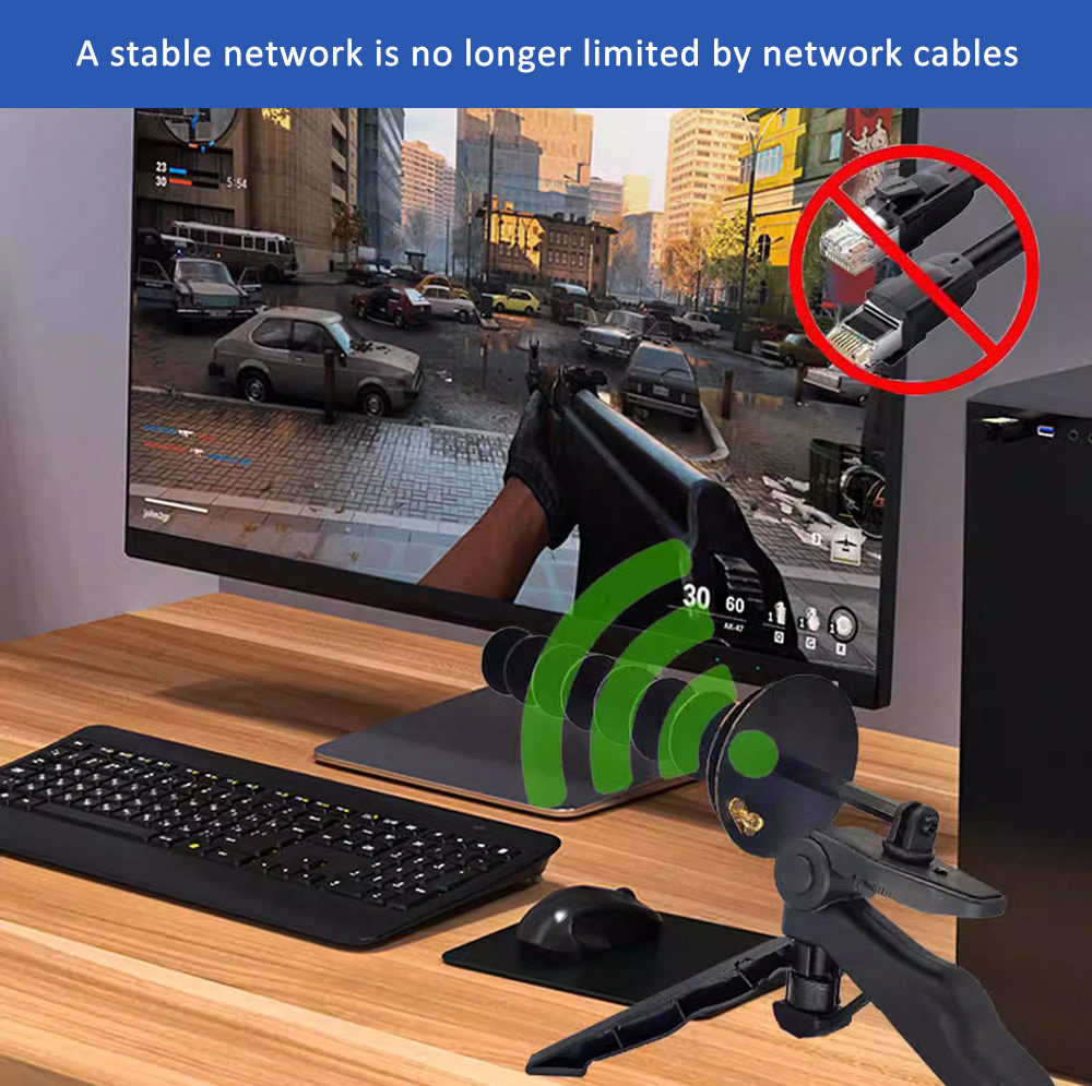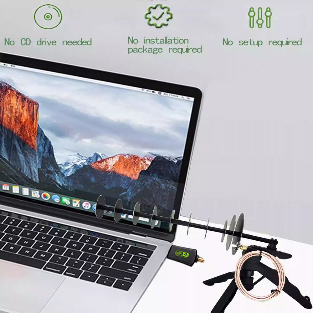 * 300Mbps 2.4GHz WIFI USB wireless network adapter. Equipped with a 16dBi high-gain directional antenna, its beam-width is narrower, which can better reduce the signal interference of TVs, remote controls, walkie-talkies, etc. The stability and speed of the WIFI network can be better guaranteed.
