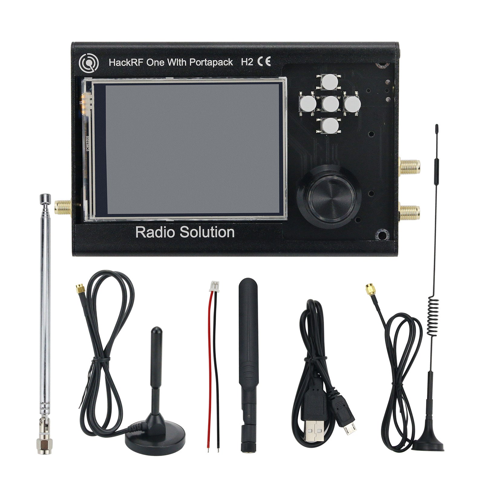 Add a PortaPack H2 to your software-defined radio for HackRF One, and leave your laptop behind! The PortaPack H2 enables attachment for your HackRF and adds a touchscreen LCD, navigation controls, headphone jack, 0.5ppm clock reference, real-time clock, micro SD card slot, and custom aluminum case.