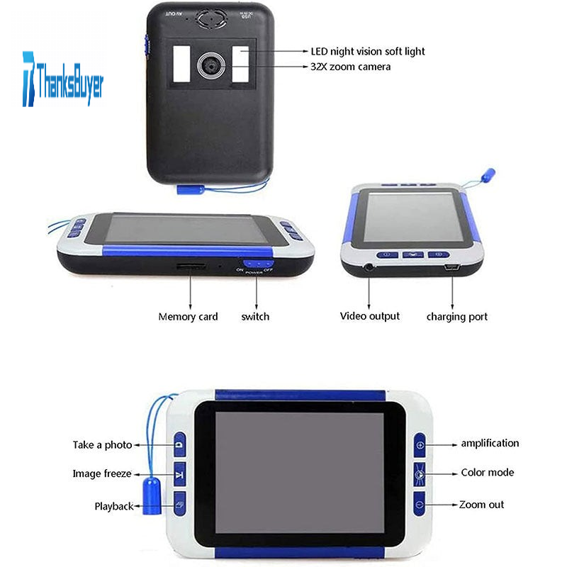 2-32X Portable Digital Magnifier 3.5" Screen with Day and Night Modes for Senior Citizens Students